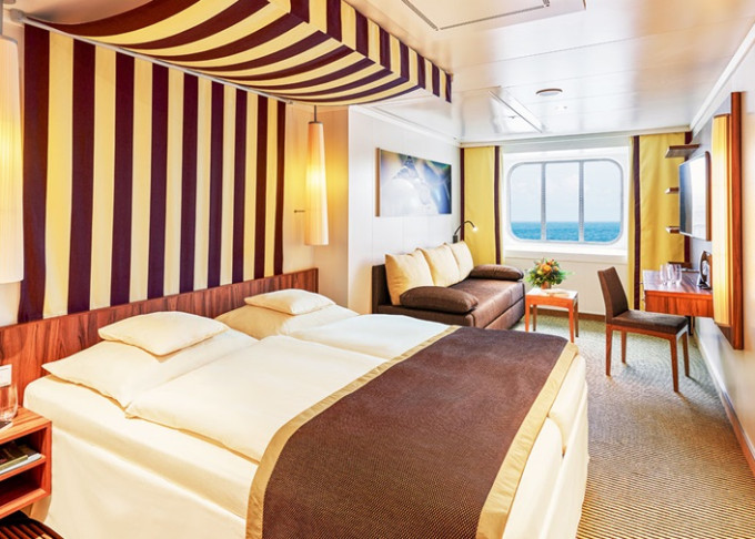 | MD - Vonkajšia kajuta PREMIUM 22-23 m². Neotvárateľné okno. 4. paluba. Max 4 osoby. Cenový model Premium. | 3 380 € 1 690 € za osobu |