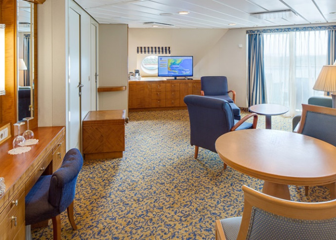 | VT - Ocean View Suite / 2 spálne 54 m². Veľké neotvárateľné okná. 2 spálne, 2 kúpeľne. 10. paluba. Max 8 osôb. Výhody Suite. | 6 432 € 3 216 € za osobu |