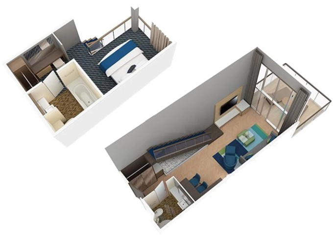 TL - Star Loft Suite 67 m² + balkón 38 m². 2-podlažný apartmán.17. paluba. Max 4 osoby. Výhody Royal Suite Star Class. 5 038 € 5 038 € za osobu