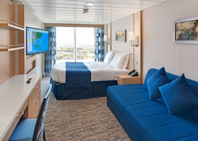 | 2T - Vnútorná kajuta s oknom / Promenade View 18 m². Neotvárateľné okno (výhľad na Royal Promenade). 7. paluba stred, vzadu. Max 5 osôb. | 1 404 € 702 € za osobu | ||